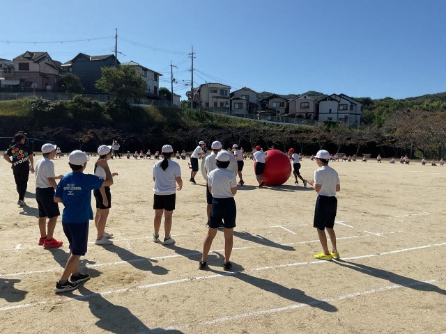 今日は運動会に向けた全体練習を行いました。開閉会式の練習、応援合戦の練習、そして児童会種目である「大玉転がし」の練習を行いました。