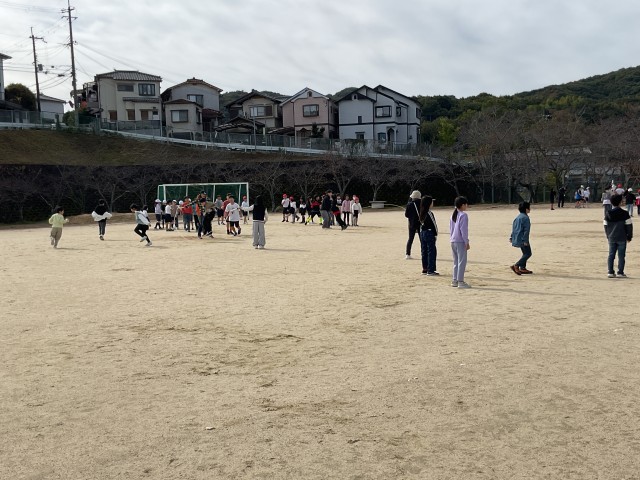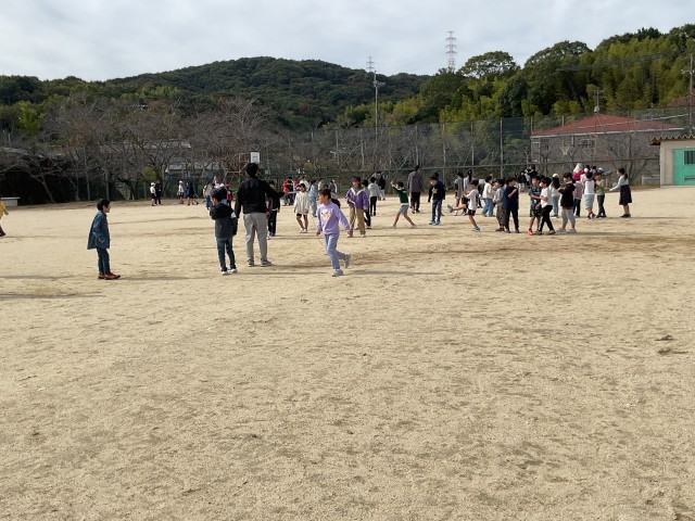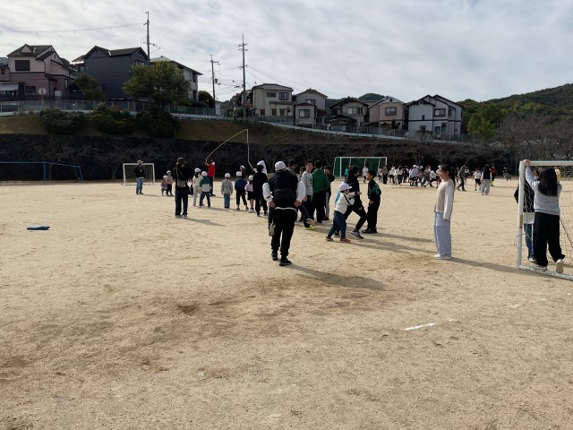 明日の兄弟学年交流会で行う大縄大会に向けて、今日の20分休みも運動場ではあちらこちらで練習が行われていました。子どもたちは「せーの!」「1、2、3…!」と掛け声を掛け合いながら、回る縄に息を合わせてジャンプ! 元気な声が運動場いっぱいに響き渡っていました。回す人、跳ぶ人、順番を待ちながら数を数える人、それぞれが声を掛け合い、練習に弾みがついています。
