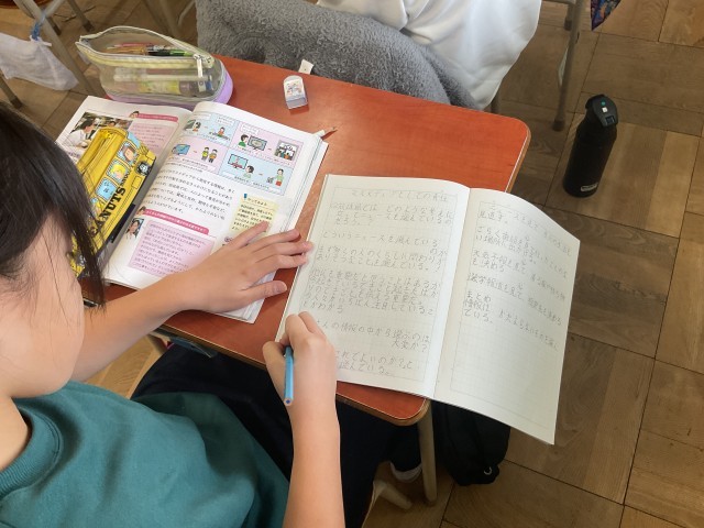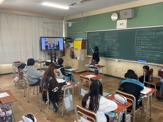 授業の中では、代表の班が事前に調べておいた内容を黒板にわかりやすく板書し、教科書を写真に撮った資料をテレビに映し出して説明するなど、視覚的にも理解しやすい工夫が見られました。発表する子どもたちも、聞く側の子どもたちも真剣そのもの。必要な情報を選び取り、分かりやすく伝えることを意識しながら学んでいる姿がとても印象的でした。