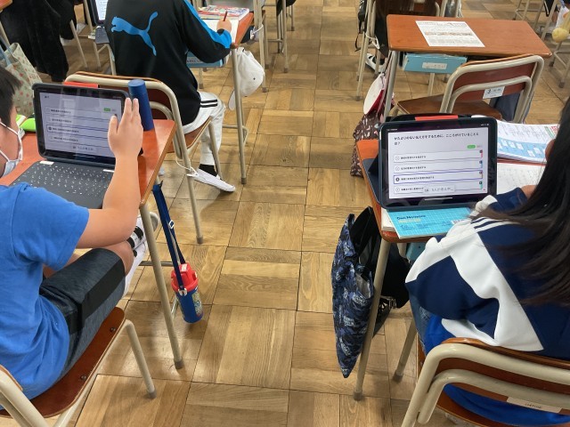 最後には、先生がロイロノートで用意したテスト問題に挑戦し、今日の学習の振り返りを行いました。一つ一つの活動を通して、情報の扱い方や伝え方について、実感を伴って理解を深める時間となりました。
