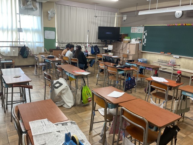 12月9日のオンライン国際交流に向けて、6年生は本日の外国語の授業で、関西外国語大学の学生さんと枚方市教育委員会の指導主事の方にご協力いただき、事前練習の時間を持ちました。