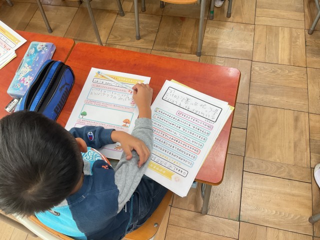 本日、生活科「秋となかよし」の単元最後の学習を行いました。これまでの活動を振り返りながら、「どんなことに気付いたかな」「夏とどんな違いがあったかな」と、一人ひとりが振り返りシートにまとめていきました。生活科で大切にされている“身近な自然に親しみ、その変化や特徴に気付く”ことを大切にしながら、子どもたちは五感を使って秋ならではの様子をとらえることができました。