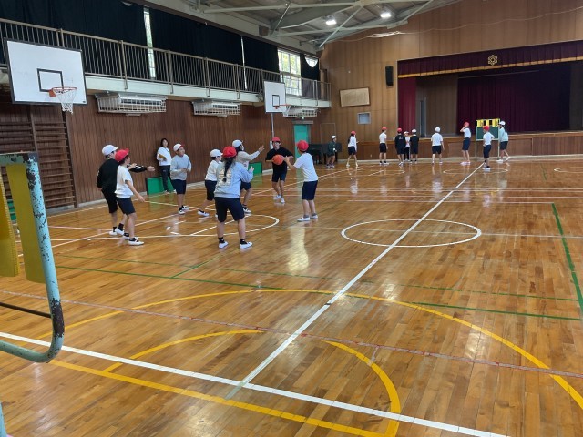 6年生の体育では、体育館でバスケットボールの学習に取り組みました。子どもたちは「ナイスパス!」「こっち空いてるよ!」と声を掛け合いながら、ゴールを目指してチームプレーで粘り強く頑張っていました。仲間の動きをよく見て考えながら動く姿は、ゴール型の目標に示されている「攻守に応じた動き」や「協力して運動に取り組む態度」につながるものです。楽しそうな声が体育館いっぱいに響き渡り、運動の楽しさを存分に味わう時間となりました。