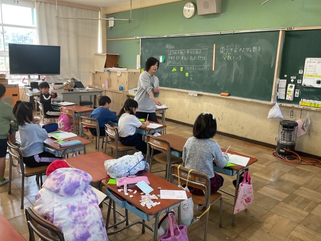 今日は算数で、新しい数の表し方である「分数」について学びました。