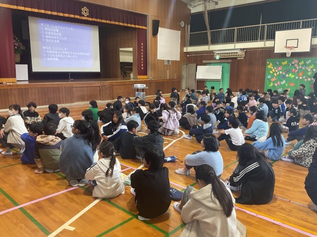 また、生活指導の担当からは、春休みの過ごし方について「は・る・や・す・み」の合言葉で話をしました。「早寝・早起き・朝ごはん」から始まり、ルールや学習、スマートフォンの使い方まで、全員で声を合わせて確認しました。ご家庭でも、この1年間の頑張りに耳を傾け、温かく励ましていただければ幸いです。