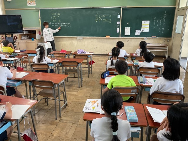 3年生の教室を訪ねると、算数の学習に熱心に取り組む子どもたちの姿がありました。本日は、10という数字に注目したかけ算の学習です。