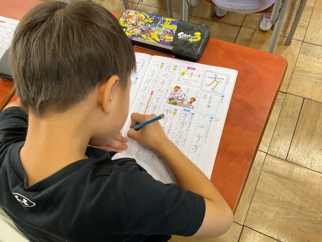 鉛筆の音だけが響く静かな教室で、一画一画、筆順を確認しながら丁寧に書き進める姿は実に立派です。ただ形を写すだけでなく、読み方や「使い方」についても、自分の生活と結びつけながら深く学んでいました。
