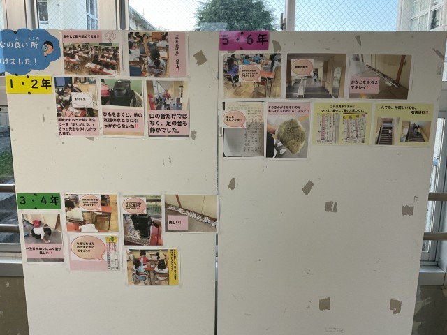 加配の教員が毎日各学級を回り、小さな善行を価値付け続けていることで、学校全体に「良い行動を大切にする文化」が少しずつ根付いています。写真は随時更新しています。保護者の皆様もご来校の際は、ぜひ中央廊下へお立ち寄りください。子どもたちの誇らしい姿を、一緒に見守っていただければ幸いです。