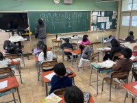 黒板に貼っている黄色くて細長いカードは「ノートを1行あける」の印だそうです。子ども達はそのカードを見て、ノートもきちんと1行あけていました。