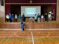 関西万博のイベント「ヨガのワシのポーズでギネス記録にチャレンジ!」に氷室小学校の約30人の子どもたちがチャレンジしました。他の学校や個人で参加した小学生、放送局の会場に集まった小学生など、大阪府内の小学生がオンラインでつながり、ヨガのワシのポーズを同時に1分間して、100人以上ができたら記録達成となります。