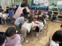 オープンスクールでは、子どもたちが保護者の方に向けて、秋の素材を使ったおもちゃで...