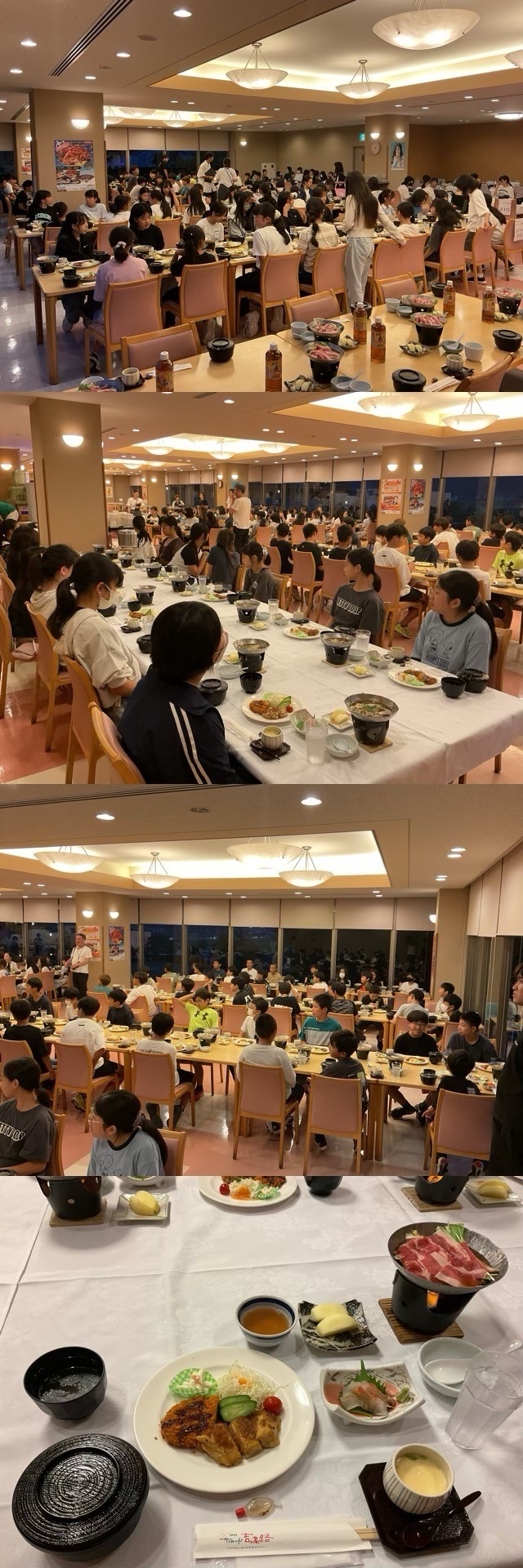 さっそく、みんなで食堂に集まり、夕食タイムです。