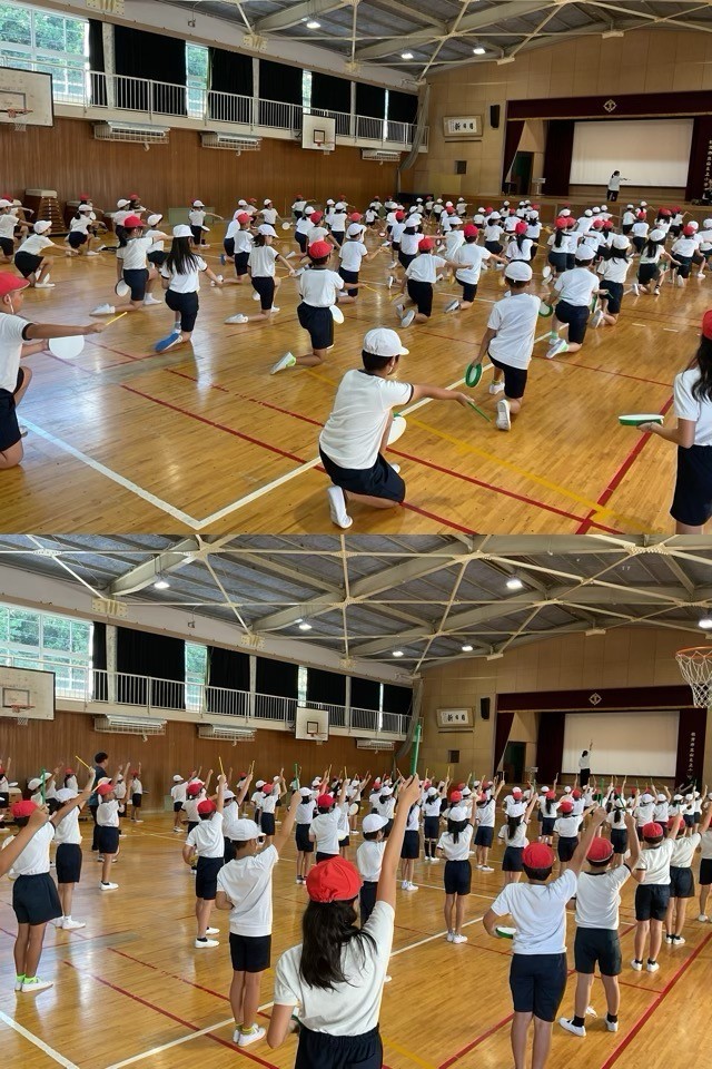 先日の4年生の運動会の練習の一部です。技をkすこしずつ覚えて、学年の団体演技の成功に向けて頑張っています。