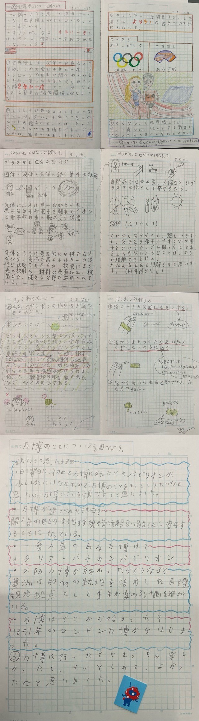 5年生の自学自習の取り組みです、 その2としてお届けしますのが、作品がたくさんありますが、じっくりとご覧ください。