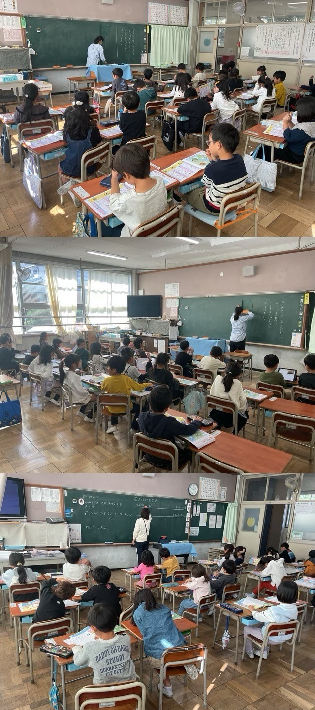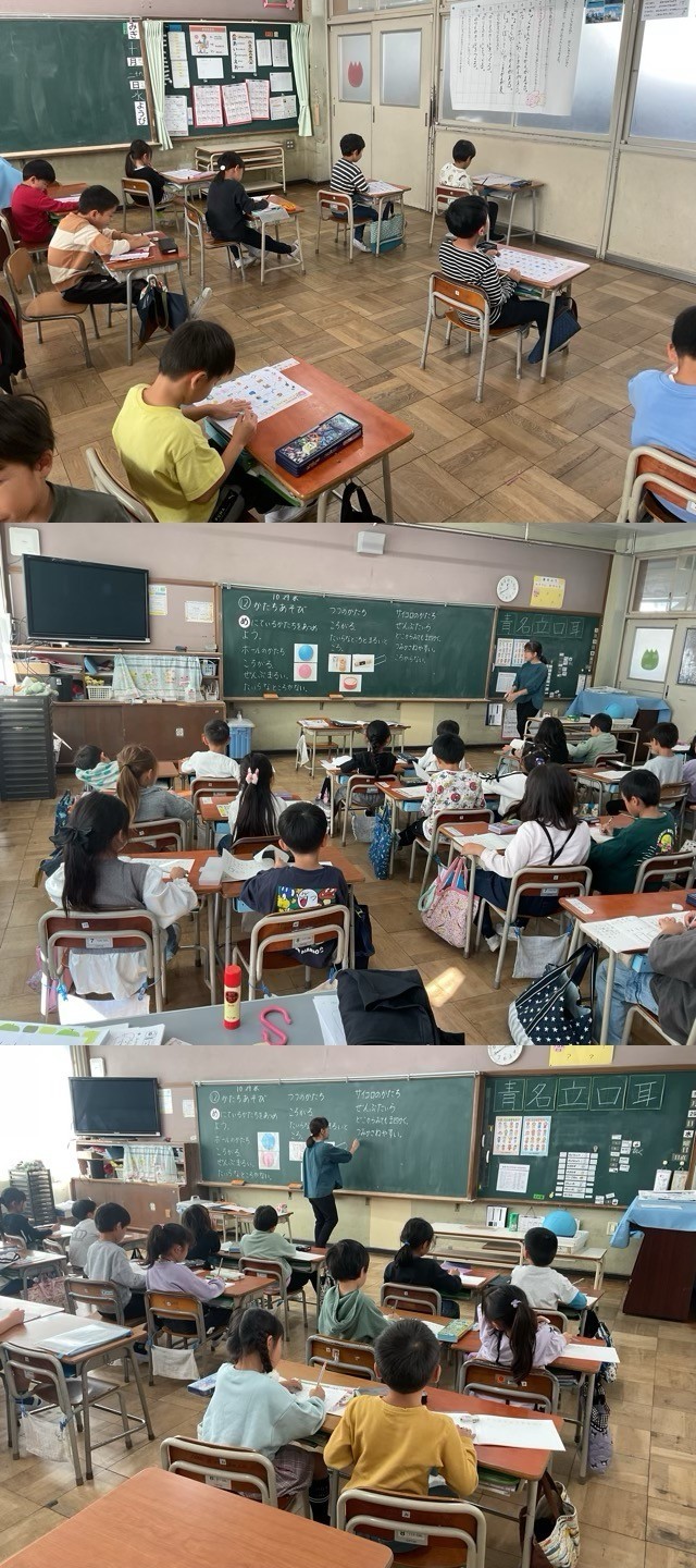 1年生は、運動会が終わって、パッと切り替えて、算数の形の学習や音楽、カタカナのテストなど