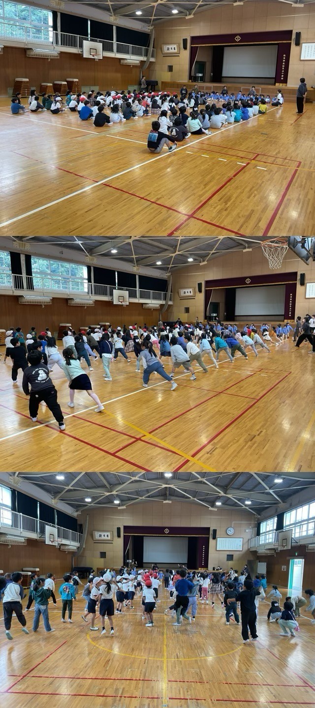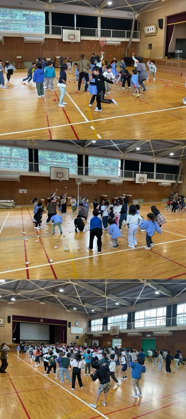 体育館に集まり、運動会の演技や山之上体操を披露して、楽しく交流することができました。