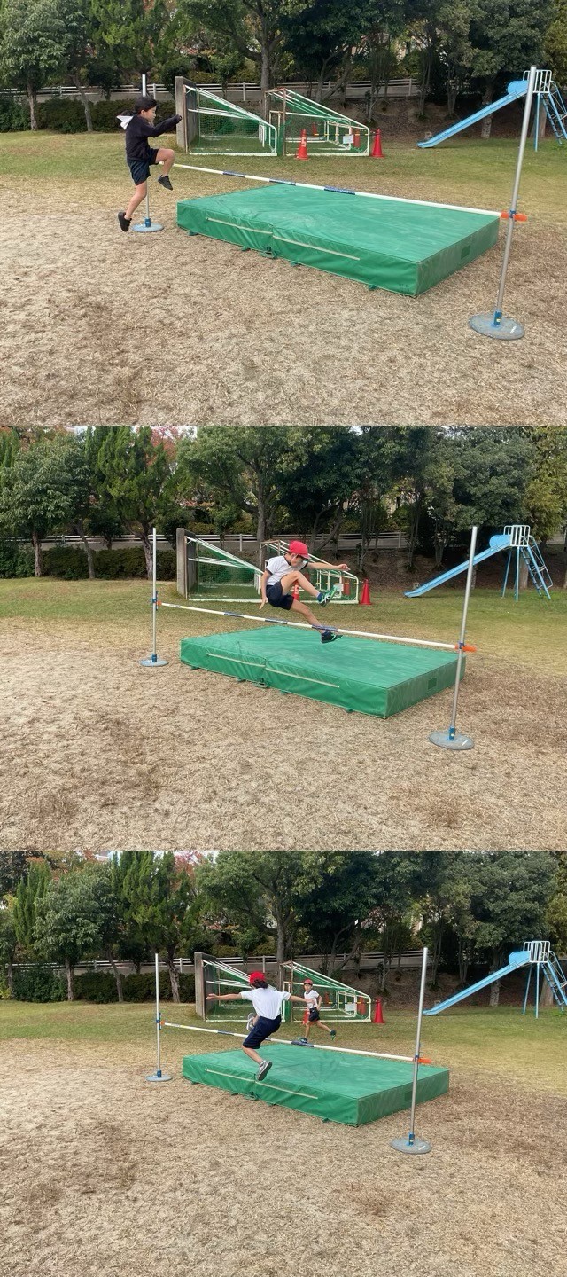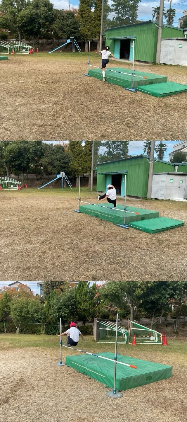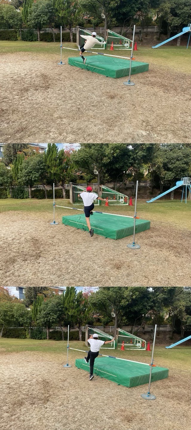高さを2種類設定して、2つのマットに低い高さからバーを少しずつ上げていきました。