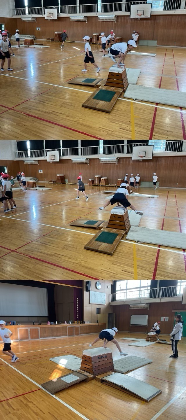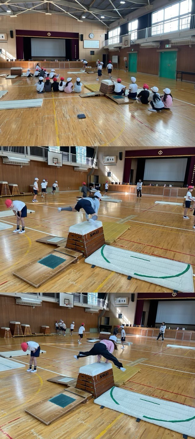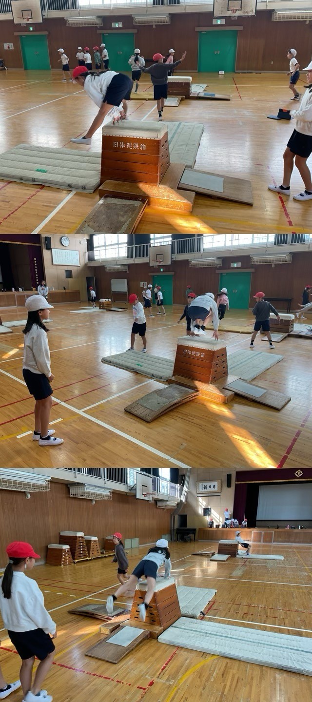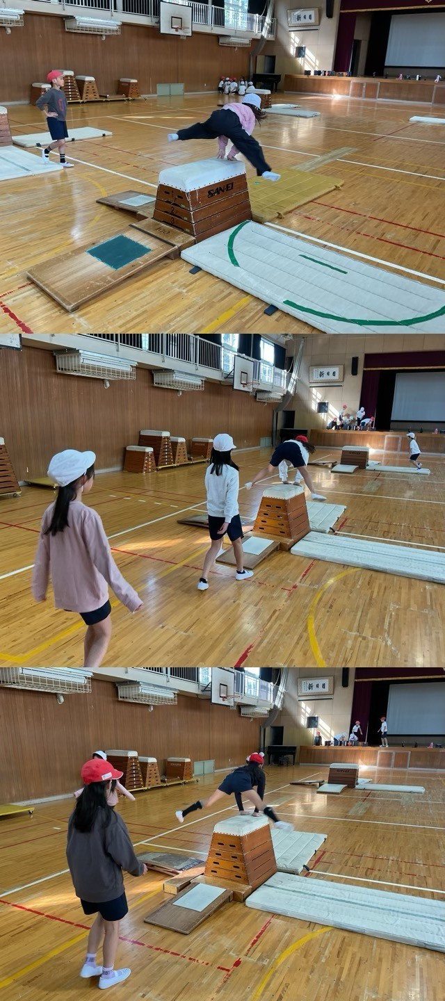 4年生は、4つのグループに分かれて、とび箱の技の発表会をしました。