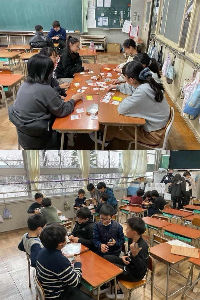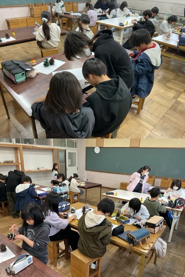 卓球クラブ、音楽クラブ、図工クラブ、囲碁将棋クラブ、パソコンクラブの活動の様子です。