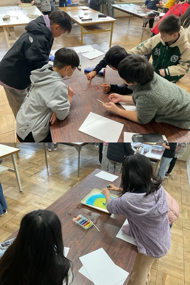 絵の具が水に混じった偶然性が、子どもたちの感動をよんでいました。
