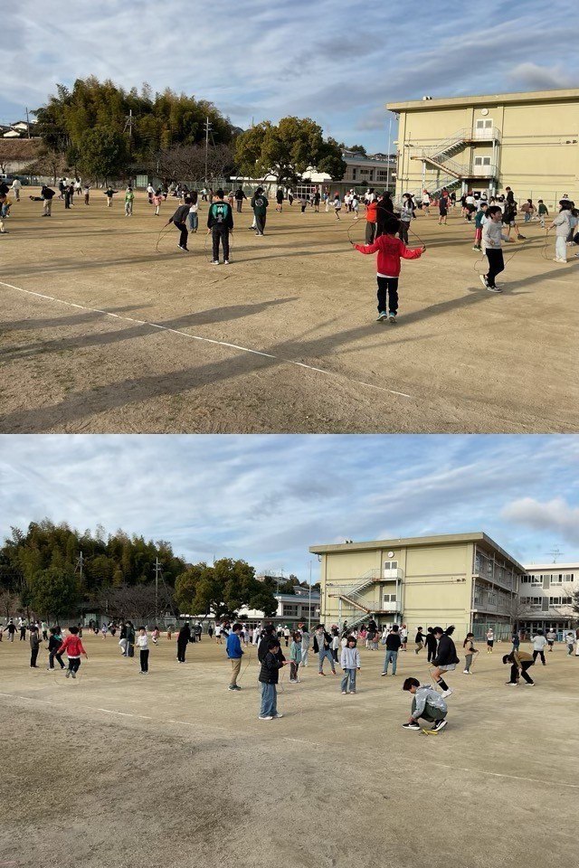 さすが5年生、色々な縄跳びの技ができていましたが、2年生も負けじと、引っかからないように、ずっとリズムよく飛ぶjことができる子もたくさんいて、朝から、大いに盛り上がりました。