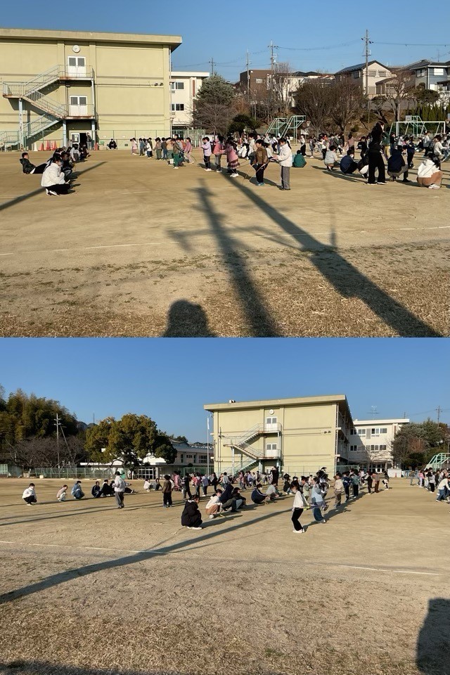 今朝も寒い中、2回目の縄跳び朝会がありました。