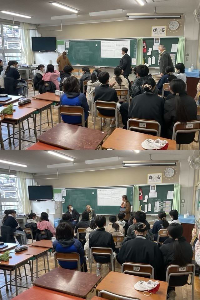 今日は、コミュニティー会長とPTA会長のお二人に来校していただきました。