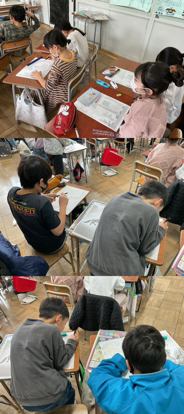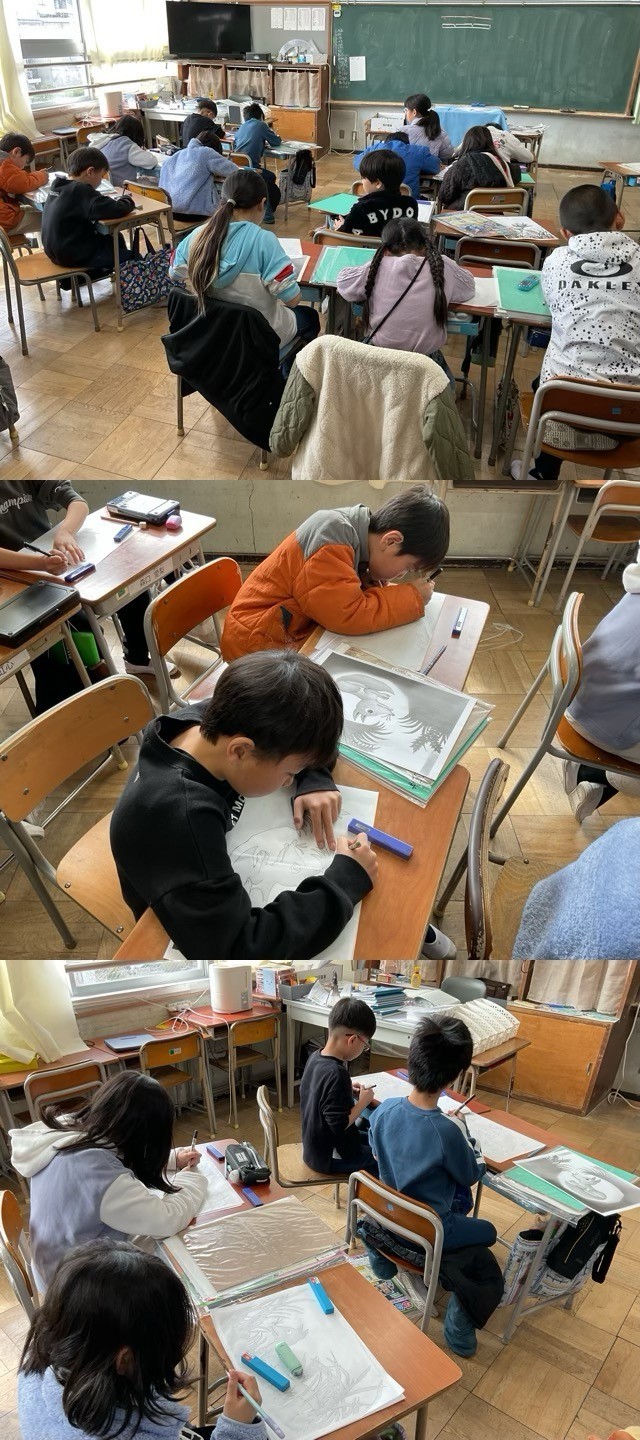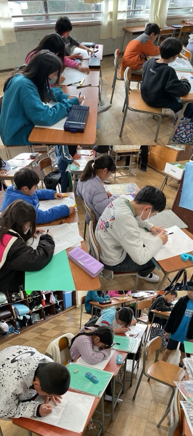 4年生も、ごんぎつねを題材にして、版画制作を頑張っていました。彫刻刀の使い方もだいぶ慣れてきています。