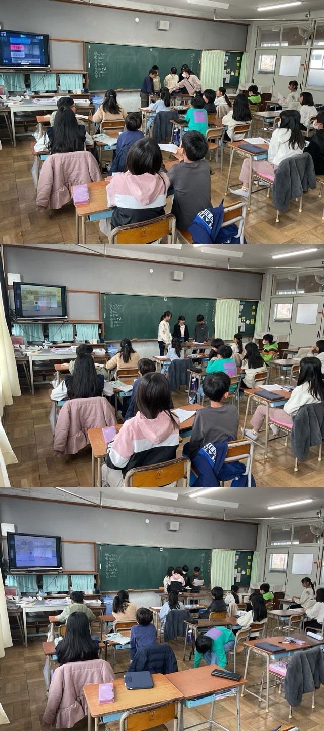 4年生は、「調べたことを ほうこくしよう」という学習で、班ごとにまとめて、発表してくれました。