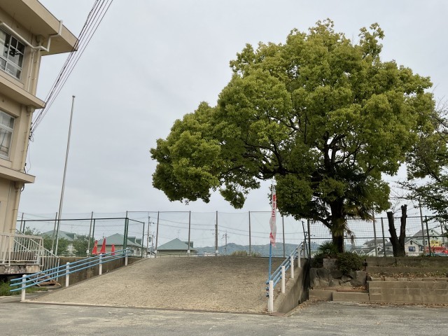 ちなみに、正門から校庭に向かって登るスロープ右手に