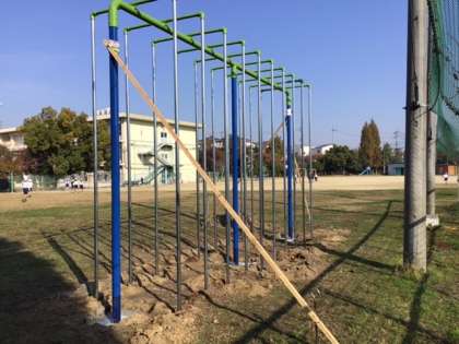 学校へ 新品の登り棒を寄付して頂きました。古い登り棒を撤去し、新しいものにと 交換工事をしています。ありがとうございます。