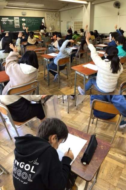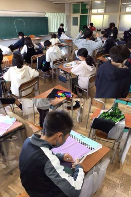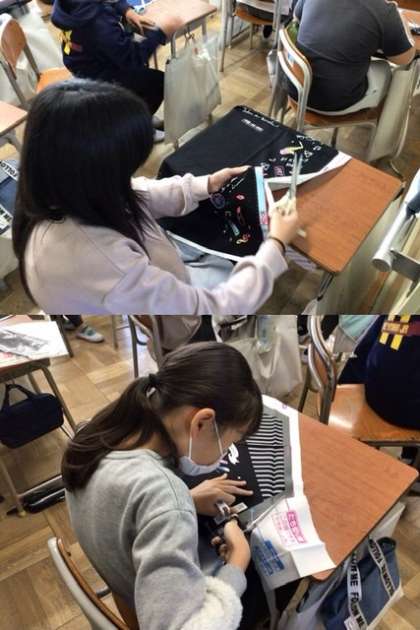 家庭科のエプロン作りや音楽の授業も頑張っています。
