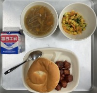 今日の給食は和食です。今日から、1年生は、6年生のお手伝いなしで、自分たちと先生たちとで、給食の準備や、片付けなどを行いました。よくがんばりました。今日の給食は、・牛乳・ご飯・ホキの南蛮漬け・金時豆・...