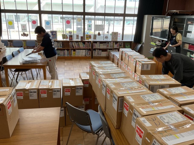1人1台端末の更新にともない、本日、新機端末を配付しました。図書室で確認をしながら、一人ひとりに手渡しでの配付です。手渡された子ども達、嬉しいそうな笑顔です。