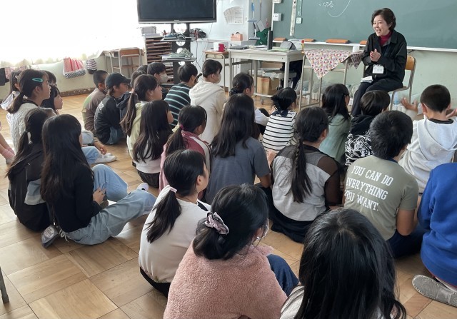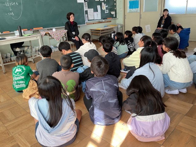 各学年にお話会をしてくださるくずはお話の会、今日は5年生のお話会のため来校いただいています。教室を見に行くと、手あそびに取り組む楽しそうな子ども達の笑顔がありました。その後のお話の朗読では、笑顔が真剣な表情に変わっています。