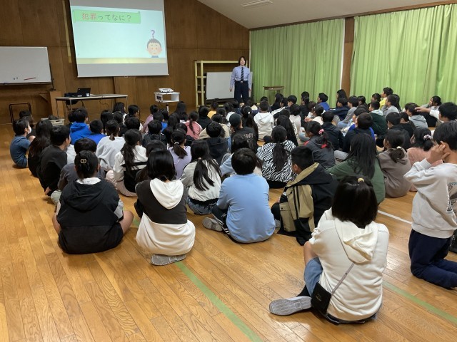 大阪少年鑑別所職員の方に来校をお願いし、いじめ防止教室を開いていただきました。日ごろ悪気なく行なっている行為が、法律によってどう捉えられるのかなど、分かりやすくお話しいただきました。人の嫌がること、迷惑になることが、犯罪につながっていくのだと学習してくれたと思います。