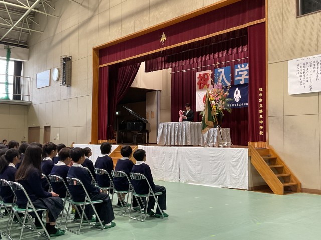 牧野小学校の中学校区である、第三中学校の第67回入学式が行われました.