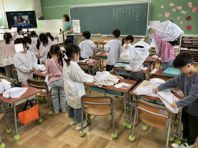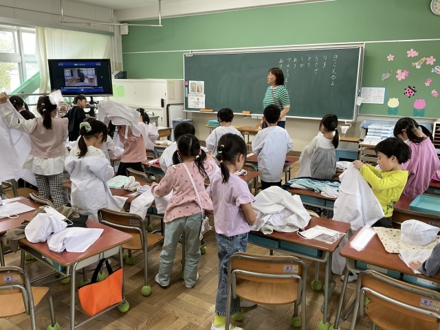 給食エプロンも、着用して当番を行います.
