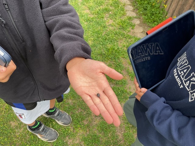 「ダンゴムシを見つけたよ!虫好きやねん」と見せてくれました。