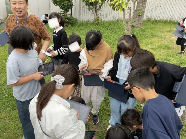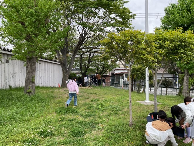 「何してるの?」と聞くと「春の生き物探し」と教えてくれました。