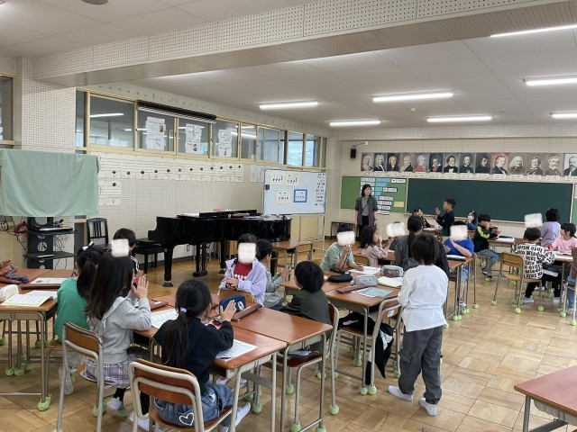 校歌の合唱は、姿勢も良く、大きな声で元気よく歌う姿に、感動しました。