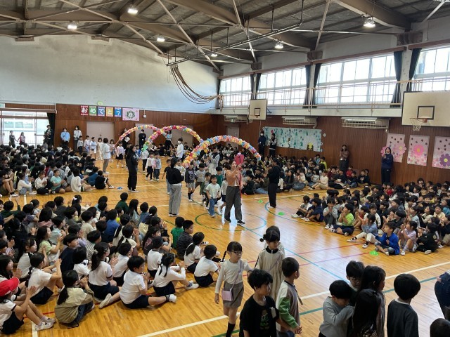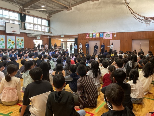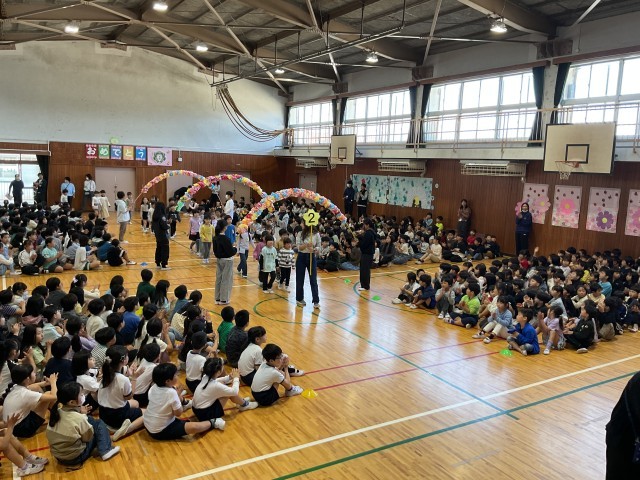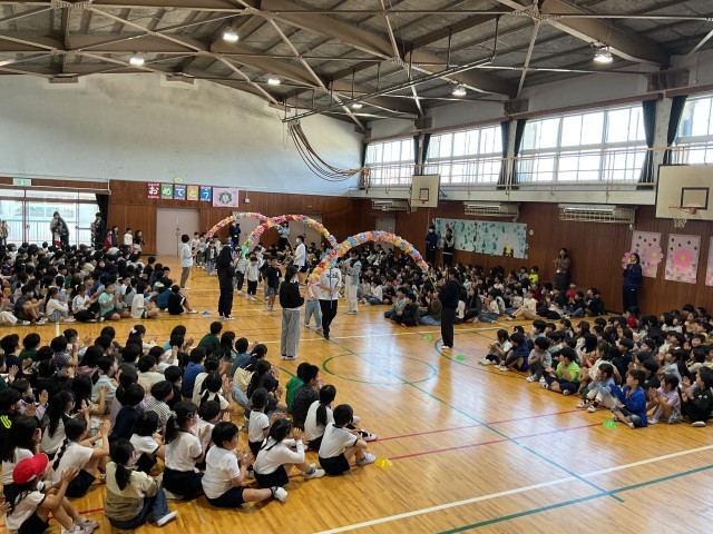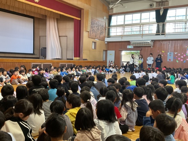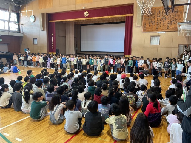 今日は、初めて、全校児童が体育館に集まる「対面式」です。