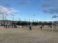 体育の授業で、フリスビーの代わりに、ドッジビーを使用して、『アルティメット』をしています。