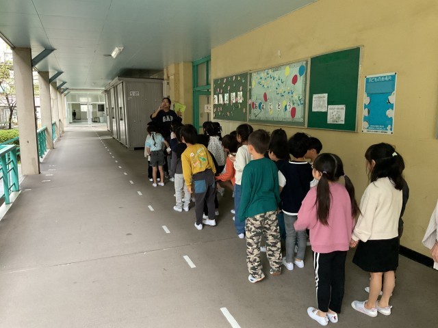 教室で、お話を聞いたり、廊下の並び方、歩き方を教えてもらったり、