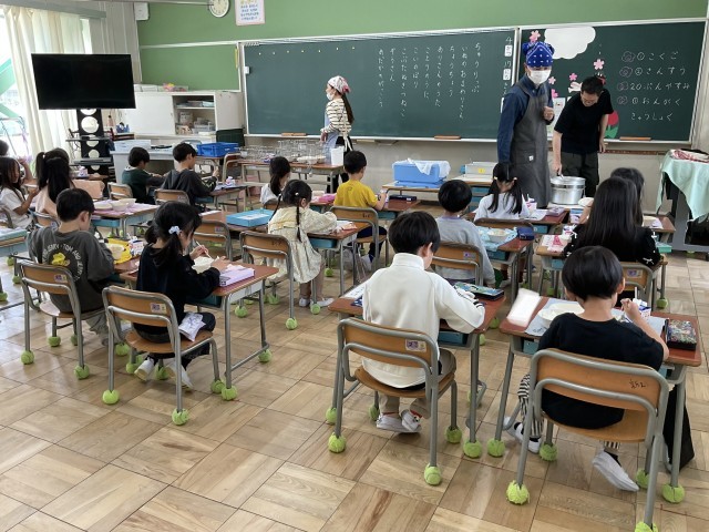 今日、4月15日(水)から、1年生の給食が始まりました。