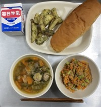 今日は、子どもたちに人気の「ポテト」です。のり塩味で、じゃがいもの甘味とあって美味しかったです。今日のメニューは・コッペパン・牛乳・ツナと人参のサラダ・のり塩ポテト・春雨と鶏団子のスープです。