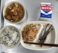 今日は、和食です。その中でも、人気のわかめご飯です。今日は、暑いぐらいの気候でしたが、ほんのり塩味のきいたわかめご飯が、疲れをとってくれました。今日のメニューは、・牛乳・わかめご飯・そぼろ煮・もやしの...