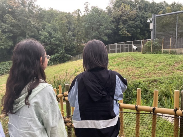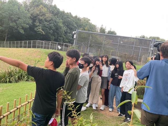 修学旅行、2日目の朝です。6時半から朝の散歩は、敷地内で飼育繁殖されているタンチョウヅルを見にいきました。きれいなタンチョウヅルを見ることができました。