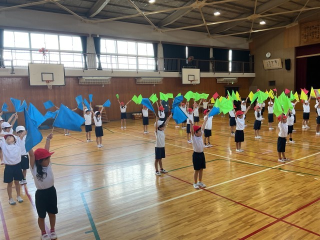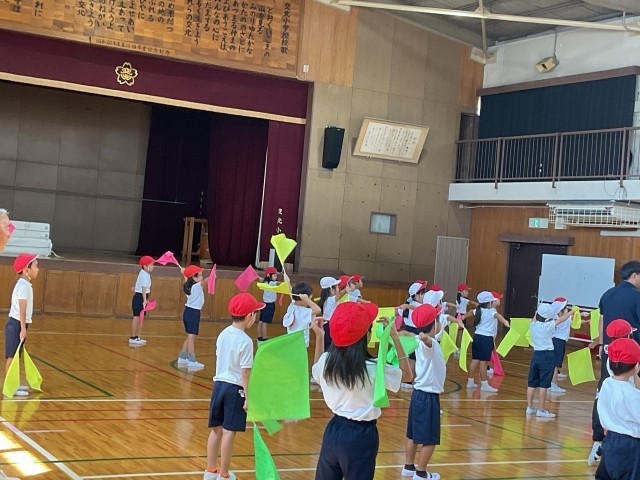 10月6日(月)ずいぶんできてきました 1年体育 公開日 2025/10/06 更新日 2025/10/06 1年生 体育館で1年生が合同で運動会の練習をしています。色とりどりのはたを格好良くシュッと音を立てて振ります。だんだん上手くなってきましたよ。 いいね(0)