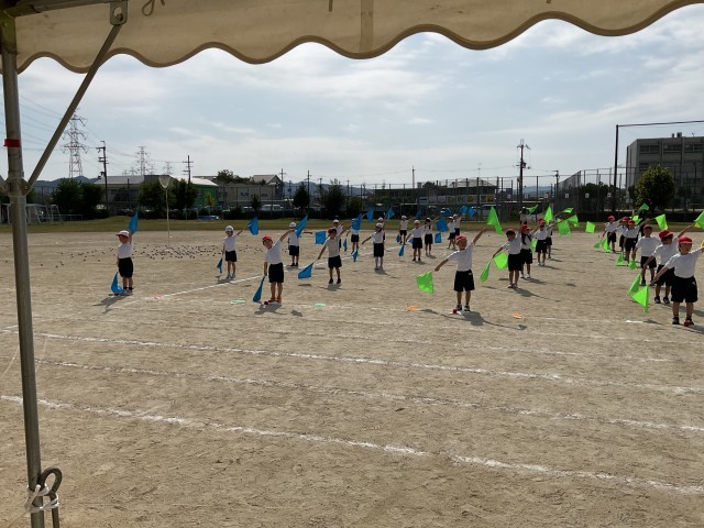 保育園との交流ということで、今日はあおぎりこども園の子どもと先生が、1年生の運動会の練習を見学にこられました。1年生のダンスも玉入れも、上手に出来ているのをこども園の先生も見ていただき、成長を感じていただけたのではないかと思います。そして、練習を見ていた子どもたちも、「来年自分たちもこんなふうになりたいな」と憧れの目で見てくれていたら嬉しいです。
